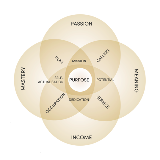 The Meira logo also enjoys similar color characteristics that represent that same sense of life, growth and safety. The floral pattern is meant to evoke the idea of Venn diagram (also called a Venn Purpose Diagram). The below diagram by Anaïs Bock can help visualize the connection between all areas of our life—for example, those of Passion, Play, Meaning, Purpose, Potential and Occupation—as a means of illumination.
